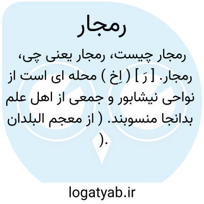 لغت نامه دهخدا رمجار. [ رَ ] ( اِخ ) محله ای است از نواحی نیشابور و جمعی از اهل علم بدانجا منسوبند. ( از معجم البلدان ).