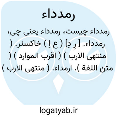 لغت نامه دهخدا رمدداء. [ رِ دِ] ( ع اِ ) خاکستر. ( منتهی الارب ) ( اقرب الموارد ) ( متن اللغة ). ارمداء. ( منتهی الارب ) ( از اقرب الموارد ).