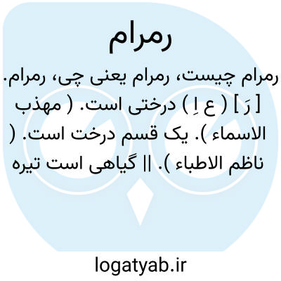 رمرام. [ رَ ] ( ع اِ ) درختی است. ( مهذب الاسماء ). یک قسم درخت است. ( ناظم الاطباء ). || گیاهی است تیره گون. ( آنندراج ). گیاهی است بهاری. ( ناظم الاطباء ) ( از اقرب الموارد از الصحاح ). قرطم بری است.گویند قرصعنه است و برگ آن خرد و پهن و خاکی رنگ و جهت دفع مضرت سم مار و کژدم و انواع هوام نگاه می دارند و طریق استعمال آن آن است که برگ آن را در آب اندازند و بگذارند تا قوت آن در آب آید پس آن آب را به او دهند که او را گزیده و قلی که از آن حاصل می شود ضعیف از قلی اشنان است. ( از مخزن الادویه ). در تذکره داود ضریر انطاکی رمرم آمده است. رجوع به رمرم شود.