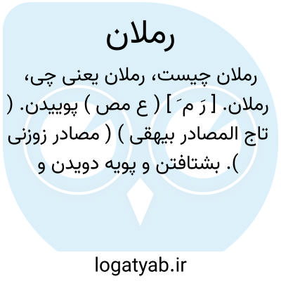 رملان. [ رَ م َ ] ( ع مص ) پوییدن. ( تاج المصادر بیهقی ) ( مصادر زوزنی ). بشتافتن و پویه دویدن و جنبانیدن هر دو دوش را. ( از منتهی الارب ). هروله کردن، و منه: رملان طائف البیت بمکة. ( از اقرب الموارد ). هروله کردن یعنی سرعت کردن در راه رفتن و جنبانیدن دوشها را. ( از متن اللغه ). رَمَل. ( منتهی الارب ) ( اقرب الموارد ) ( متن اللغة ). مَرْمَل. ( اقرب الموارد ) ( متن اللغة ).