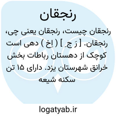 لغت نامه دهخدا رنجقان. [ رَ ج ِ ] ( اِخ ) دهی است کوچک از دهستان رباطات بخش خرانق شهرستان یزد. دارای 15 تن سکنه شیعه و فارسی زبان می باشد. ( از فرهنگ جغرافیایی ایران ج 10 ).