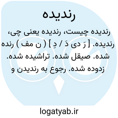 رندیده. [ رَ دی دَ / دِ ] ( ن مف ) رنده شده. صیقل شده. تراشیده شده. زدوده شده. رجوع به رندیدن و رند و رنده شود.