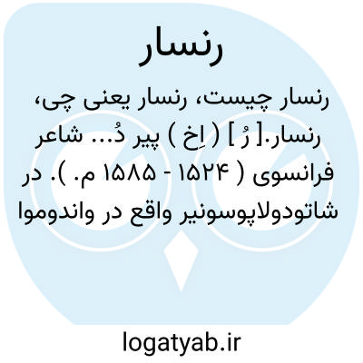 رنسار.[ رُ ] ( اِخ ) پیر دُ... شاعر فرانسوی ( 1524 - 1585 م. ). در شاتودولاپوسونیر واقع در واندوموا بدنیا آمد. وی رئیس مدرسه ادبی بنام پلیاد گردید و بوسیله او روح تازه ای در زبان و ادبیات فرانسه وارد شد.