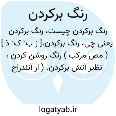 رنگ برکردن.[ رَ ب َ ک َ دَ ] ( مص مرکب ) رنگ روشن کردن، نظیر آتش برکردن. ( از آنندراج ). تدبیر و چاره اندیشیدن، و هرساعت به رنگ و شکلی تازه خود را نمودن: