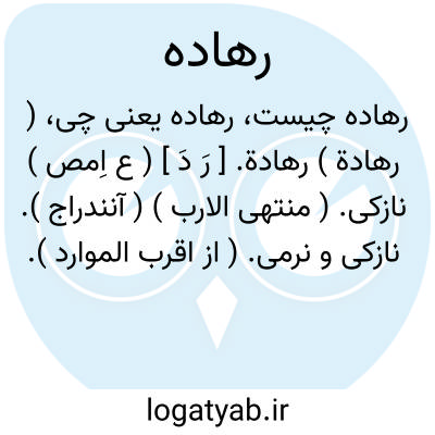 ( رهادة ) رهادة. [ رَ دَ ] ( ع اِمص ) نازکی. ( منتهی الارب ) ( آنندراج ). نازکی و نرمی. ( از اقرب الموارد ).