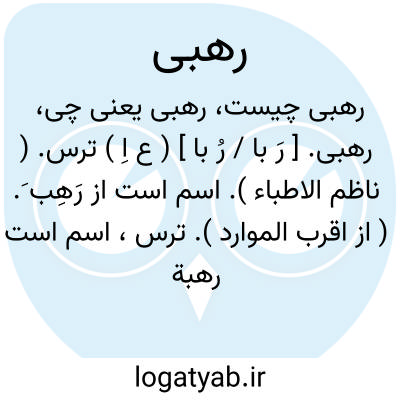رهبی. [ رَ با / رُ با ] ( ع اِ ) ترس. ( ناظم الاطباء ). اسم است از رَهِب َ. ( از اقرب الموارد ). ترس، اسم است رهبة را. ( منتهی الارب ) ( آنندراج ). رجوع به رهبوت و رهبة شود.