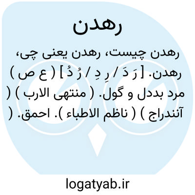 رهدن. [ رَ دَ / رِ دِ / رُ دُ ] ( ع ص ) مرد بددل و گول. ( منتهی الارب ) ( آنندراج ) ( ناظم الاطباء ). احمق. ( مهذب الاسماء ). || ( اِ ) رهدل. ( ناظم الاطباء ). ج، رَهادِن. ( اقرب الموارد ). مرغی است به مکه مانند گنجشک. ( منتهی الارب ) ( آنندراج ). رجوع به رهدل شود.