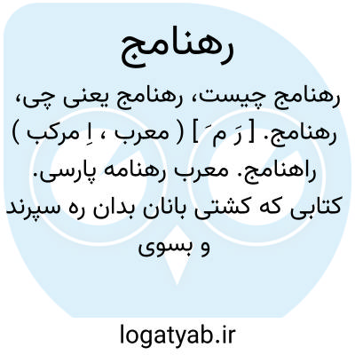 رهنامج. [ رَ م َ ] ( معرب، اِ مرکب ) راهنامج. معرب رهنامه پارسی. کتابی که کشتی بانان بدان ره سپرند و بسوی لنگرگاه و جز آن پی ببرند. ( از اقرب الموارد ) ( ناظم الاطباء ). به معنی راهنامج. ( منتهی الارب ). معرب رهنامه. راهنامه. رهنامه. ( یادداشت مؤلف ). رجوع به راهنامج و رهنامه شود.