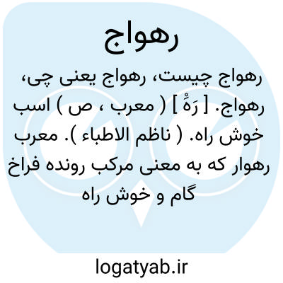 رهواج. [ رَهَْ ] ( معرب، ص ) اسب خوش راه. ( ناظم الاطباء ). معرب رهوار که به معنی مرکب رونده فراخ گام و خوش راه باشد. ( آنندراج ) ( از برهان ). رجوع به راهوار شود.