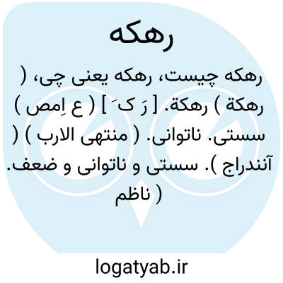 ( رهکة ) رهکة. [ رَ ک َ ] ( ع اِمص ) سستی. ناتوانی. ( منتهی الارب ) ( آنندراج ). سستی و ناتوانی و ضعف. ( ناظم الاطباء ). ضعف. ( اقرب الموارد ).