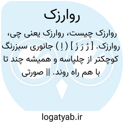 روارزک. [ رُ رَ زَ ] ( اِ ) جانوری سبزرنگ کوچکتر از چلپاسه و همیشه چند تا با هم راه روند. || صورتی است که از کلیچه سازند و خورند. ( لغت محلی شوشتر نسخه خطی ).