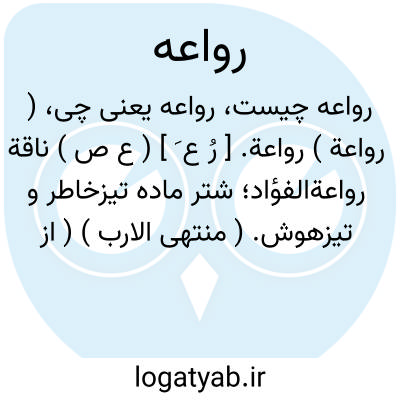 ( رواعة ) رواعة. [ رُ ع َ ] ( ع ص ) ناقة رواعةالفؤاد؛ شتر ماده تیزخاطر و تیزهوش. ( منتهی الارب ) ( از معجم متن اللغة ) ( از اقرب الموارد ).