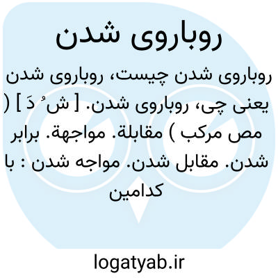 لغت نامه دهخدا روباروی شدن. [ ش ُ دَ ] ( مص مرکب ) مقابلة. مواجهة. برابر شدن. مقابل شدن. مواجه شدن: با کدامین رو نمیدانم سلیم !میشود آیینه روباروی او.محمدقلی سلیم ( از آنندراج ).مقابلة؛ روباروی شدن. ( منتهی الارب ). و رجوع به روبرو و روباروی و روباروی کردن شود.