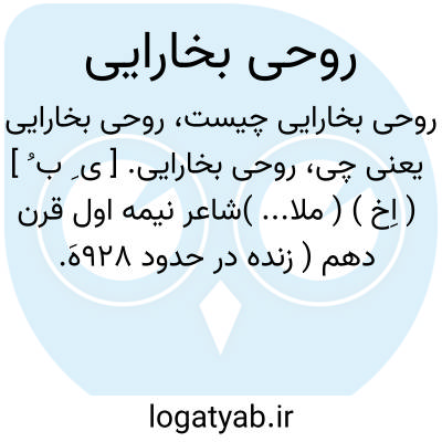 روحی بخارایی. [ ی ِ ب ُ ] ( اِخ ) ( ملا... )شاعر نیمه اول قرن دهم ( زنده در حدود 928هَ. ق. ) ملازم شیبک خان بود. این دوبیت در تعریف شب از اوست:
