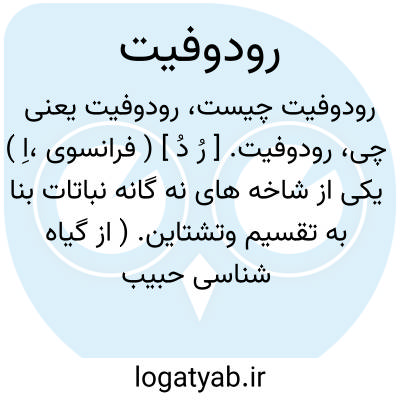 لغت نامه دهخدا رودوفیت. [ رُ دُ ] ( فرانسوی،اِ ) یکی از شاخه های نه گانه نباتات بنا به تقسیم وتشتاین. ( از گیاه شناسی حبیب اﷲ ثابتی چ دانشگاه ص 193 ). رجوع بهمین کتاب شود.