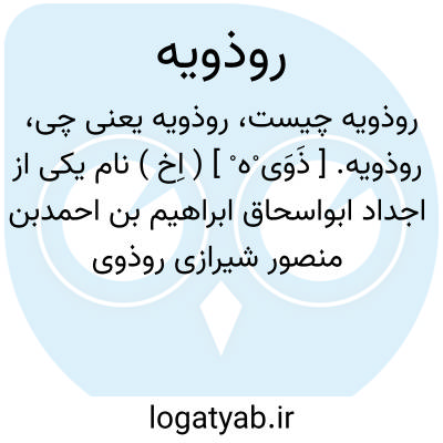 روذویه. [ ذَوَی ْه ْ ] ( اِخ ) نام یکی از اجداد ابواسحاق ابراهیم بن احمدبن منصور شیرازی روذوی معروف به ابن روذویه است. ( از انساب سمعانی ). رجوع به روذوی ابراهیم شود.