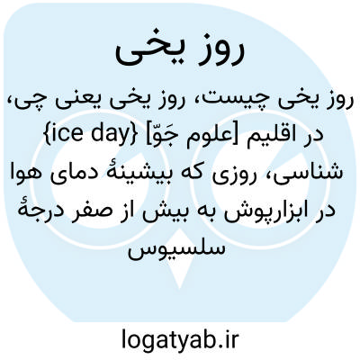 {ice day} [علوم جَوّ] در اقلیم شناسی، روزی که بیشینۀ دمای هوا در ابزارپوش به بیش از صفر درجۀ سلسیوس نمی رسد
