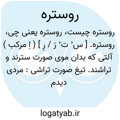 روستره. [ س ُ ت ُ رَ / رِ ] ( اِ مرکب ) آلتی که بدان موی صورت سترند و تراشند. تیغ صورت تراشی: مردی دیدم بلندبالا... سجاده بر دوش افکنده و روستره با مسواک بر دوش. ( اسرارالتوحید چ بهمنیار ص 52 ).
