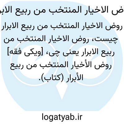[ویکی فقه] روض الأخیار المنتخب من ربیع الأبرار (کتاب). کتاب روض الاخیار المنتخب من ربیع الابرار نوشته ابن خطیب، جزء نوشته های ادبی است که به فرهنگ عمومی می پردازد؛ این کتاب به زبان عربی نگاشته شده است.