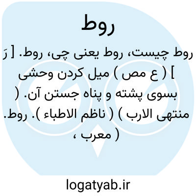 روط. [ رَ ] ( ع مص ) میل کردن وحشی بسوی پشته و پناه جستن آن. ( منتهی الارب ) ( ناظم الاطباء ).