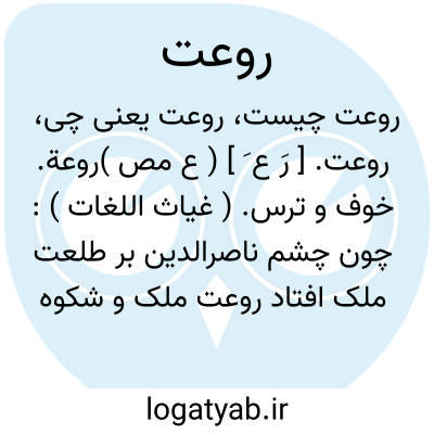 روعت. [ رَ ع َ ] ( ع مص )روعة. خوف و ترس. ( غیاث اللغات ): چون چشم ناصرالدین بر طلعت ملک افتاد روعت ملک و شکوه پادشاهی زمام اختیار از دست او بستد. ( ترجمه تاریخ یمینی ص 104 ). و رجوع به روعة شود. || بهره ای از زیبایی: چشم جهان بینی او داغ کردند و برروعت جمال و طلعت چون هلال او ببخشودند. ( ترجمه تاریخ یمینی ). || دل و عقل. ( غیاث اللغات ).