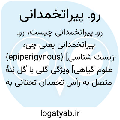 {epiperigynous} [زیست شناسی- علوم گیاهی] ویژگی گلی با گل بُنۀ متصل به رأس تخمدان تحتانی به نحوی که کاسبرگ ها و گلبرگ ها و پرچم های آن به لبۀ گل بُنه چسبیده اند