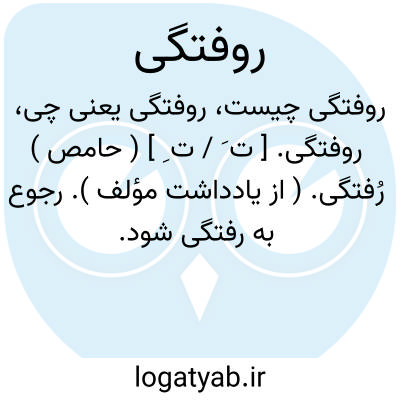 روفتگی. [ ت َ / ت ِ ] ( حامص ) رُفتگی. ( از یادداشت مؤلف ). رجوع به رفتگی شود.