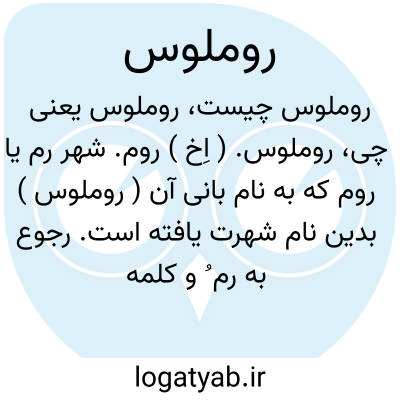 روملوس. ( اِخ ) روم. شهر رم یا روم که به نام بانی آن ( روملوس ) بدین نام شهرت یافته است. رجوع به رم ُ و کلمه بعدی ( روملوس ) شود.