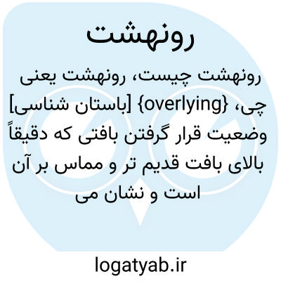 {overlying} [باستان شناسی] وضعیت قرار گرفتن بافتی که دقیقاً بالای بافت قدیم تر و مماس بر آن است و نشان می دهد بافت جدیدتر بلافاصله پس از بافت قدیم تر شکل گرفته است