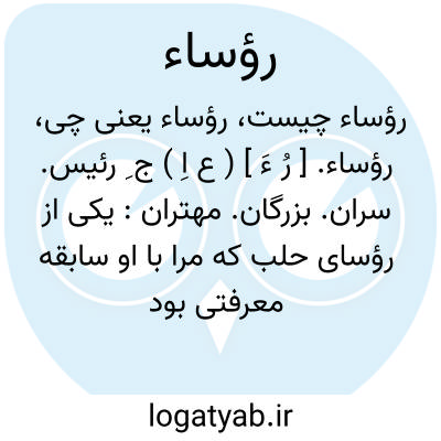 رؤساء. [ رُ ءَ ] ( ع اِ ) ج ِ رئیس. سران. بزرگان. مهتران: یکی از رؤسای حلب که مرا با او سابقه معرفتی بود گذر کرد. ( گلستان ). و رجوع به رئیس شود.