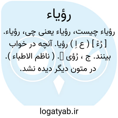 لغت نامه دهخدا رؤیاء. [ رُءْ ] ( ع اِ ) رؤیا. آنچه در خواب بینند. ج، رُؤی ̍. ( ناظم الاطباء ). در متون دیگر دیده نشد.