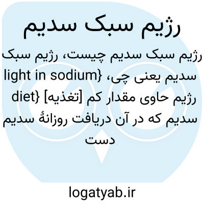 {light in sodium diet} [تغذیه] رژیم حاوی مقدار کم سدیم که در آن دریافت روزانۀ سدیم دست کم پنجاه درصد کمتر از دریافت طبیعی آن باشد