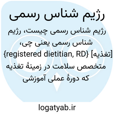 {registered dietitian, RD} [تغذیه] متخصص سلامت در زمینۀ تغذیه که دورۀ عملی آموزشی تغذیه را نیز در بیمارستان یا مراکز عمومی گذرانده باشد