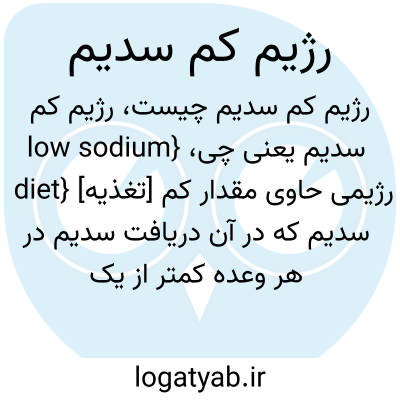 {low sodium diet} [تغذیه] رژیمی حاوی مقدار کم سدیم که در آن دریافت سدیم در هر وعده کمتر از یک صدوچهل میلی گرم باشد متـ. رژیم کم نمک