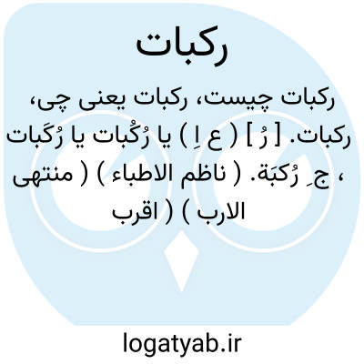 رکبات. [ رُ ] ( ع اِ ) یا رُکُبات یا رُکَبات، ج ِ رُکبَة. ( ناظم الاطباء ) ( منتهی الارب ) ( اقرب الموارد ). ج ِرکبة به معنی زانو یا جای باریکی ساق و ذراع ستور یا آرنج از هر حیوان. ( آنندراج ). رجوع به رکبة شود.
