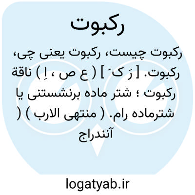 رکبوت. [ رَ ک َ ] ( ع ص، اِ ) ناقة رکبوت؛ شتر ماده برنشستنی یا شترماده رام. ( منتهی الارب ) ( آنندراج ) ( ناظم الاطباء ). شترماده رام. رکبانة. رکباة. ( از اقرب الموارد ). رجوع به رَکبانَة و رَکباة شود.