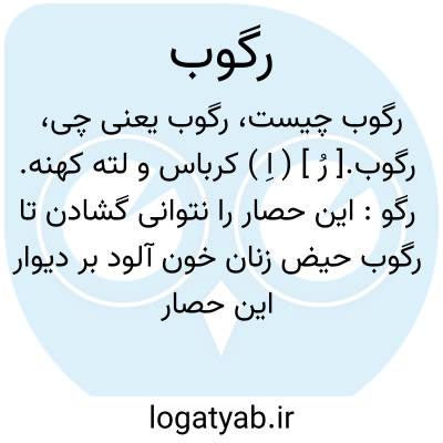 رگوب.[ رُ ] ( اِ ) کرباس و لته کهنه. رگو: این حصار را نتوانی گشادن تا رگوب حیض زنان خون آلود بر دیوار این حصار برفکنی. ( بلعمی ). رجوع به رگو شود.