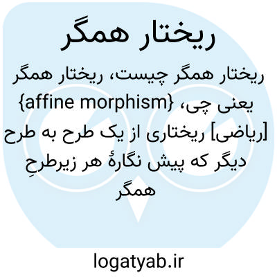 {affine morphism} [ریاضی] ریختاری از یک طرح به طرح دیگر که پیش نگارۀ هر زیرطرحِ همگر باز، یک طرح همگر باشد