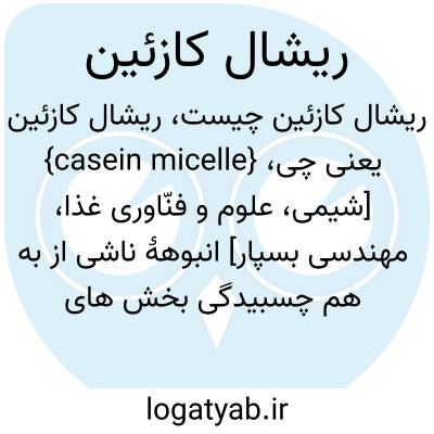 {casein micelle} [شیمی، علوم و فنّاوری غذا، مهندسی بسپار] انبوهۀ ناشی از به هم چسبیدگی بخش های منفرد کازئین در هنگام تشکیل دَلَمۀ کازئین