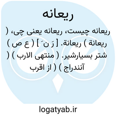 ( ریعانة ) ریعانة. [ رَ ن َ ] ( ع ص ) شتر بسیارشیر. ( منتهی الارب ) ( آنندراج ) ( از اقرب الموارد ) ( ناظم الاطباء ).