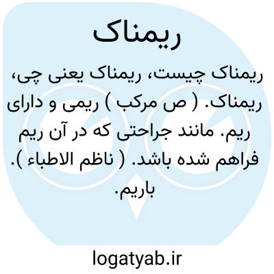 ریمناک. ( ص مرکب ) ریمی و دارای ریم. مانند جراحتی که در آن ریم فراهم شده باشد. ( ناظم الاطباء ). باریم. پرریم. ریمگین. طَفِس. خم ناک. ( یادداشت مؤلف ). چرکناک. ( آنندراج ). || کثیف. ناپاک. چرکین. ملوث. پلید. آلوده. ( ناظم الاطباء ):