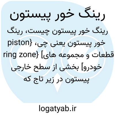 {piston ring zone} [قطعات و مجموعه های خودرو] بخشی از سطح خارجی پیستون در زیر تاج که شیارهای رینگ پیستون در آنجا قرار دارند متـ. حلقه خور پیستون