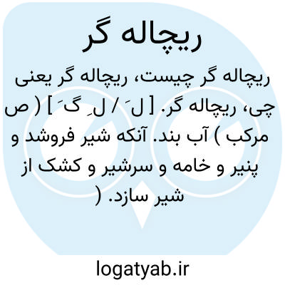 ریچاله گر. [ ل َ / ل ِ گ َ ] ( ص مرکب ) آب بند. آنکه شیر فروشد و پنیر و خامه و سرشیر و کشک از شیر سازد. ( یادداشت مؤلف ).