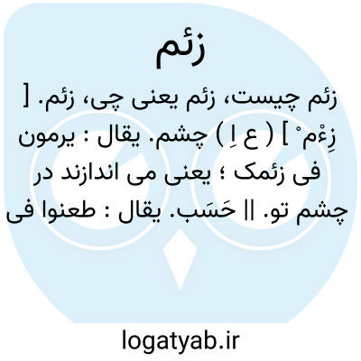زئم. [ زِءْم ْ ] ( ع اِ ) چشم. یقال: یرمون فی زئمک؛ یعنی می اندازند در چشم تو. || حَسَب. یقال: طعنوا فی زئمه؛ طعن عیب کردند در حسب او. ( منتهی الارب ) ( اقرب الموارد ).