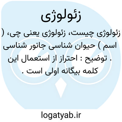 ( اسم ) حیوان شناسی جانور شناسی. توضیح: احتراز از استعمال این کلمه بیگانه اولی است.