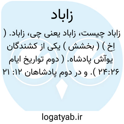 زاباد. ( اِخ ) ( بخشش ) یکی از کشندگان یوآش پادشاه. ( دوم تواریخ ایام 24:26 ). و در دوم پادشاهان 12: 21 یوزاکار خوانده شده است لکن اسم آخرین صحیح تر است. ( قاموس کتاب مقدس ).