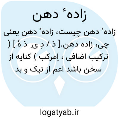 زاده دهن.[ دَ / دِ ی ِ دَ هََ ] ( ترکیب اضافی، اِمرکب ) کنایه از سخن باشد اعم از نیک و بد یعنی، هر چه از دهن برآید. ( برهان قاطع ) ( آنندراج ). و رجوع به زاده شود.