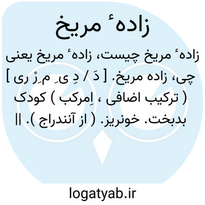 لغت نامه دهخدا زاده مریخ. [ دَ / دِ ی ِ م ِرْ ری ] ( ترکیب اضافی، اِمرکب ) کودک بدبخت. خونریز. ( از آنندراج ). || کنایه از آهن است. ( برهان قاطع ) ( آنندراج ). و رجوع به زاده شود.