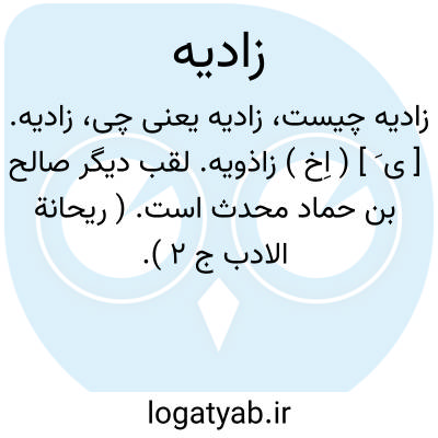 زادیه. [ ی َ ] ( اِخ ) زاذویه. لقب دیگر صالح بن حماد محدث است. ( ریحانة الادب ج 2 ).