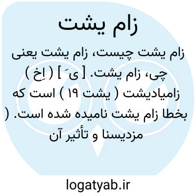 زام یشت. [ ی َ ] ( اِخ ) زامیادیشت ( یشت 19 ) است که بخطا زام یشت نامیده شده است. ( مزدیسنا و تأثیر آن در ادب پارسی تألیف دکتر معین ص 148 ). و رجوع به زامیادیشت شود.
